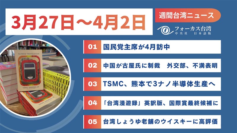 中央社フォーカス台湾で今週(3月27日~4月2日)配信した記事の中から、台湾関連の注目ニュースをお届けします。